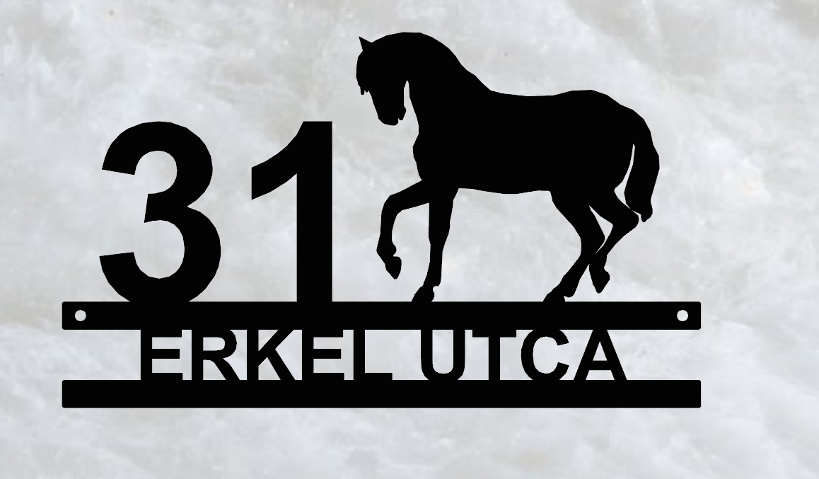 A lovas házszámtábla egy igazán különleges darab, mely lézervágott technológiával készül! Kérhető különböző variációkban, egyedi feliratokkal!