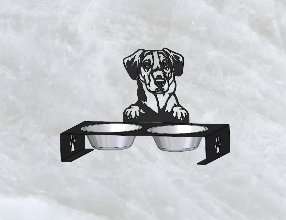 A kutyatál tartó egy igazán különleges darab, mely lézervágott technológiával készült! A tacskó etetőtál tartó kérhető különböző variációkban, egyedi felirattal.