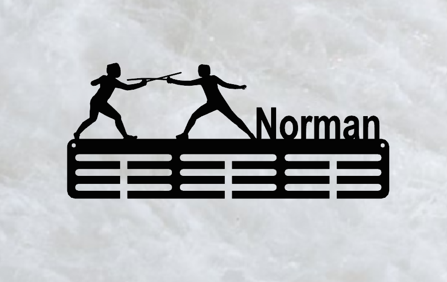 A vívás éremtartó egy igazán különleges darab, mely lézervágott technológiával készül! Kérhető különböző variációkban, bármilyen sportágban egyedi feliratokkal!